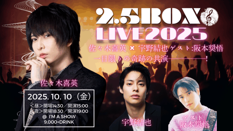 大人気作品で共演し、多くの観客を魅了してきたあの3人が今度は“音楽”で集結!! 「2.5BOX LIVE 2025」 佐々木喜英、宇野結也とスペシャル生バンドで開催!