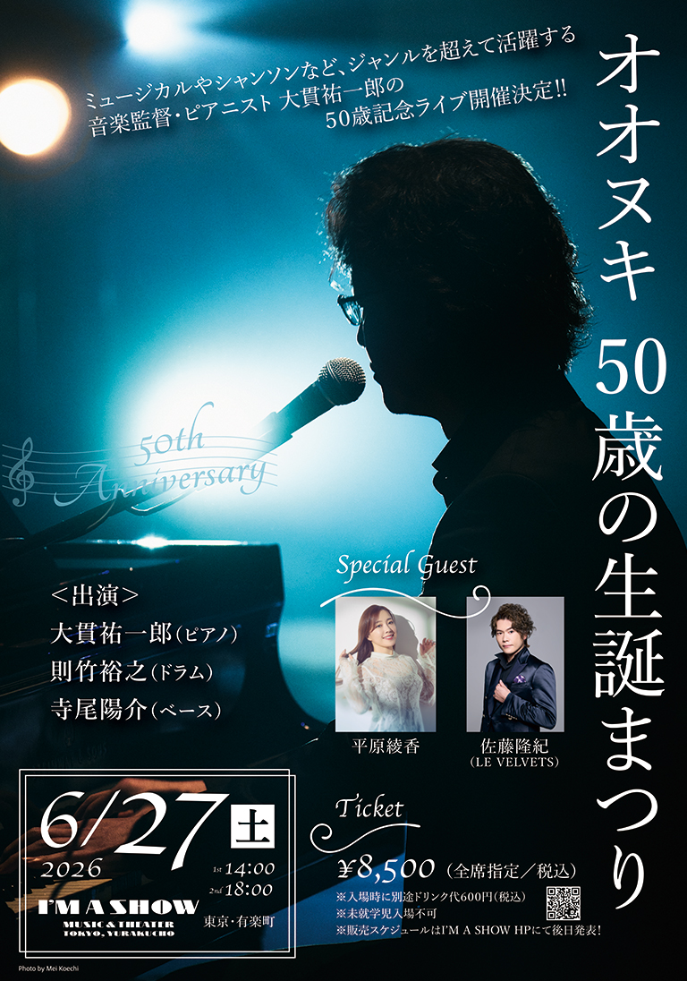 音楽監督・ピアニスト 大貫祐一郎の50歳記念ライブ開催決定!